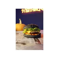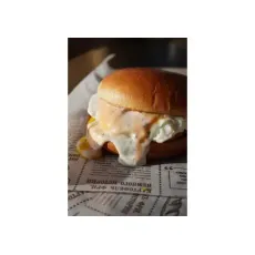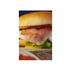 Булочка, котлета говяжья, сыр чеддер, бекон, лист салата, омлет, томат, соус бургер