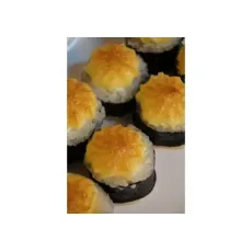 Запеченный ролл с креветкой и ананасом: ролл со сливочным сыром, королевскими креветками и ананасом, запеченный под шапкой из японского майонеза