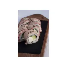 Ролл со сливочным сыром, жареным лососем, огурцом, в обсыпке из стружки тунца. 8 шт.
