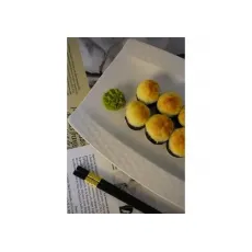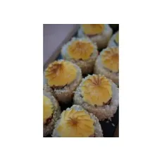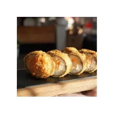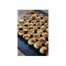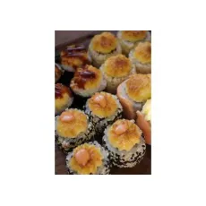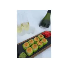 Ассорти из 5 рисовых шариков, жаренных во фритюре:- 2 со сливочным сыром и курицей- 2 со сливочным сыром, лососем и икрой тобико- 1 со сливочным сыром и королевской креветкой*соус оплачивается отдельно