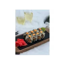 Ролл с обжаренным лососем, огурцом, острым соусом спайси, обсыпан в кунжуте. 8 шт.