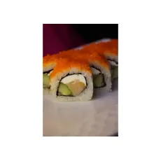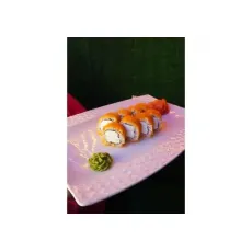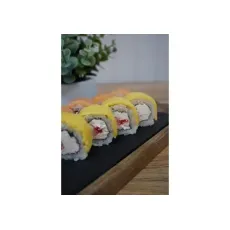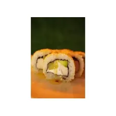 Ролл с мясом краба, огурцом и японским майонезом, в обсыпке из икры тобико. 8 шт.