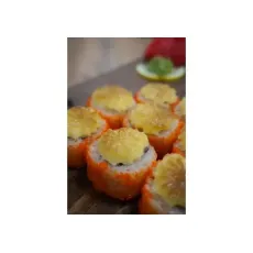 Ролл с охлажденным лососем и нежным сливочным сыром, запечённый под шапкой из японского майонеза, 8 шт.
