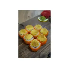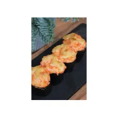 Ролл с королевской креветкой и огурцом в икре тобико, запеченный под шапкой из японского майонеза, 8шт.