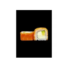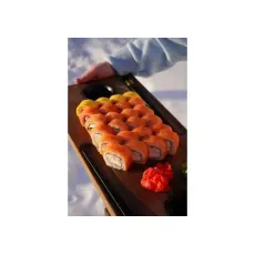 Ролл со сливочным сыром, копченым лососем, огурцом, в обсыпке из икры тобико. 8шт.