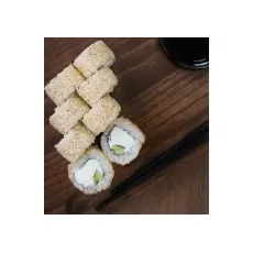 Ролл со сливочным сыром, помидором, огурцом, пекинской капустой, обсыпан кунжутом. 8 шт.