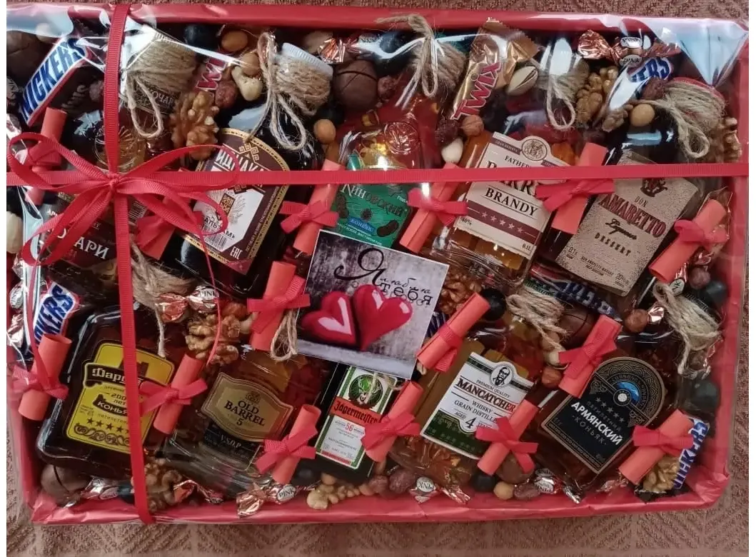 Бокс с орехами, шоколадом и напитками может быть разного объема ...