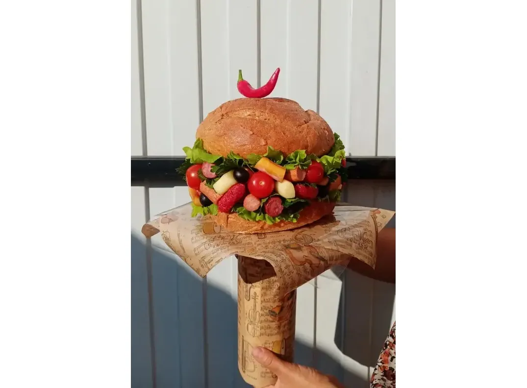 Букет-бургер очень необычный ,классный.Точно вызовет море эмоций и будет в центре внимания!!!Прекрасный подарок как мужчине,так и женщине...