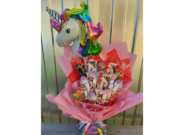 Яркий,интересный и запоминающийся букет из конфет и сладостей"в кулечках"