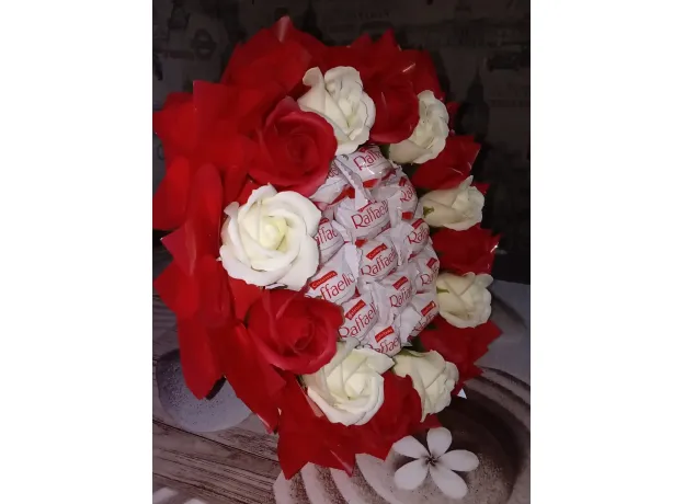 Очень яркий и красивый букет из мыльных роз и раффаэло!!!