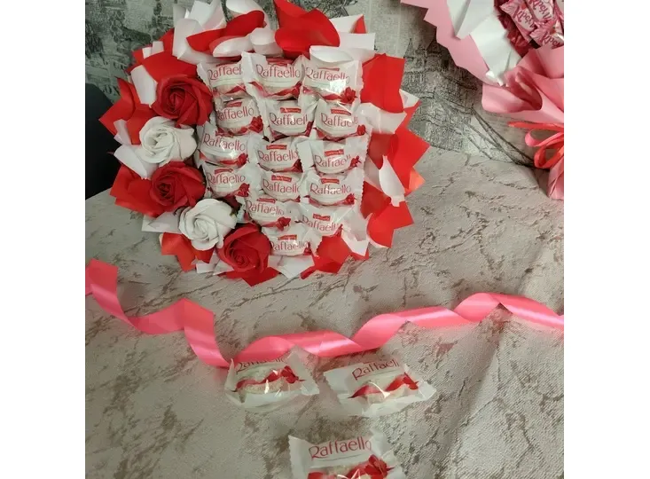 Букет с раффаэло и мыльными розами(5 шт)