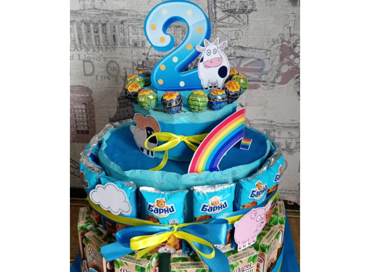 Такая композиция подходит для презентации от именниника в садик, на дне рождения!!!