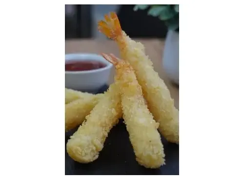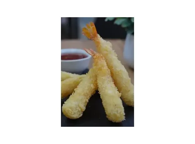 Это большая сочная очищенная креветка в панировке с хвостиком (5 шт в наборе)
