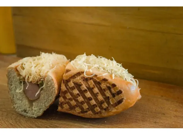 Булочка, молочная сосиска, огурец маринованный, горчичный соус, кетчуп, сырВес: 170 гр.