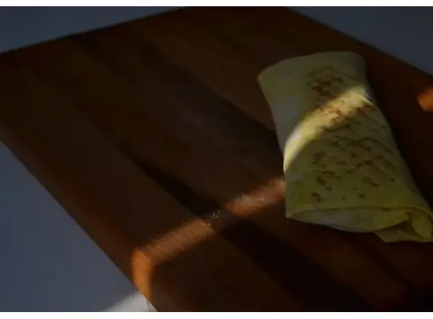 Лаваш луковый, огурец, помидор, картофель фри, карамелизованный лук, мясо свиньи/курицы, соус, зелень Вес: 320 гр