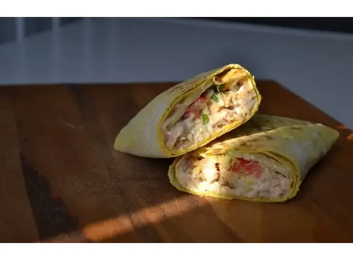 Лаваш луковый, огурец, помидор, капуста маринованная, карамелизованный лук, мясо свиньи/курицы, соус, зелень Вес: 320 гр