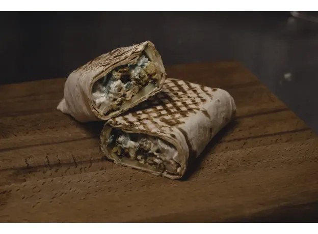 Лаваш, помидоры, огурец, картофель фри, мясо свиньи/курицы, соус, зеленьВес: 480 гр.