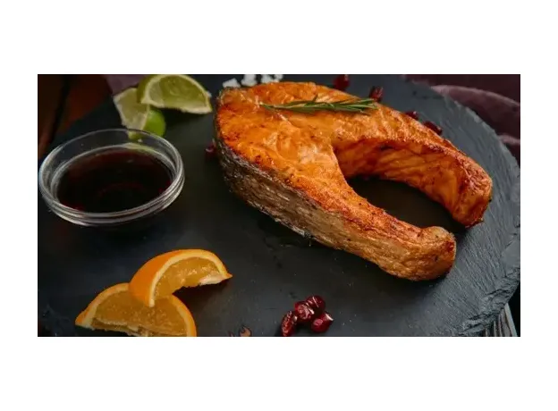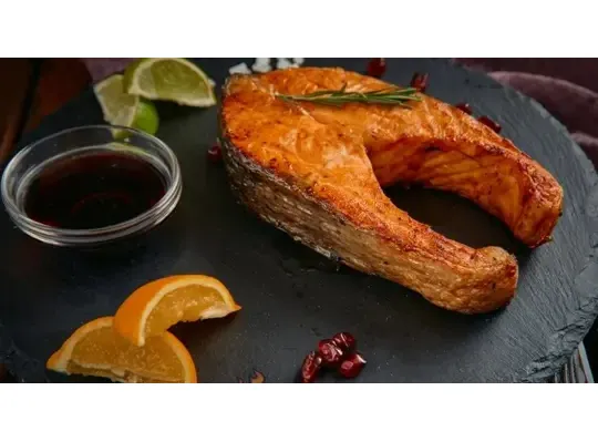 Форель на углях, вес 300 гр. Без учёта ужарки, гранатовый соус, лимон