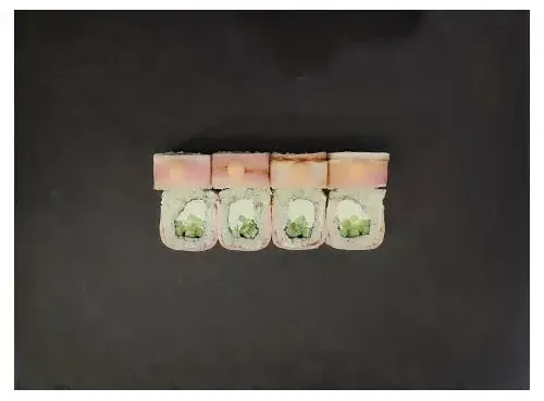 В этом европейском ролле бекон изумительно сочетается со сливочным сыром и пикантным соусом Спайси