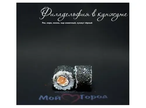 Состав: рис, нори, сыр сливочныйлосось, кунжут
