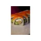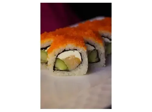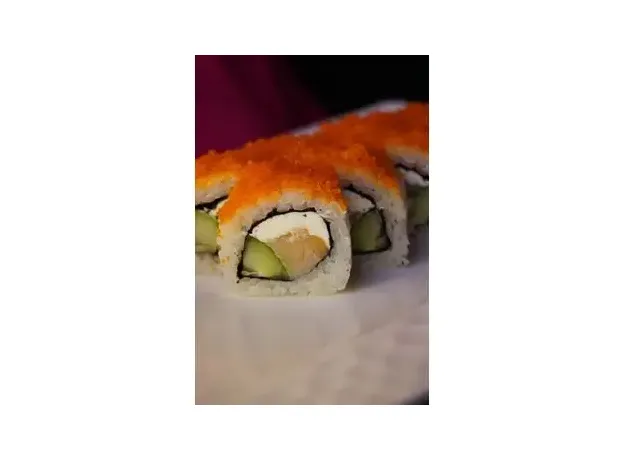 Ролл со сливочным сыром, копченым лососем, огурцом, в обсыпке из икры тобико. 8шт.