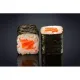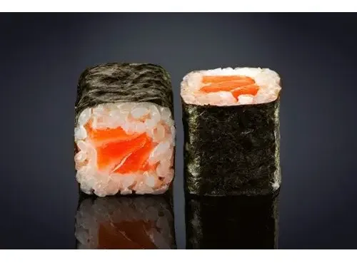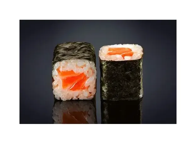 Ролл с лососем, разрезается на 8 кусочков.Вес ролла 110 грИмбирь, васаби и соевый соус приобретаются отдельно.