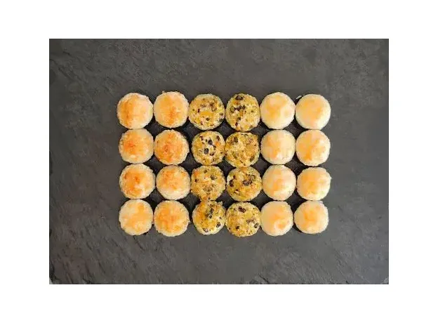 Роллы с начинкой из снежного краба, запечёные под шапками из лосося, королевских креветок и мидий в сливочном соусе. Количество кусочков в сете - 24 шт.Вес 800 г