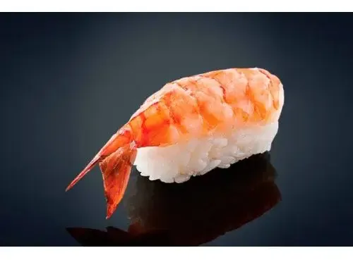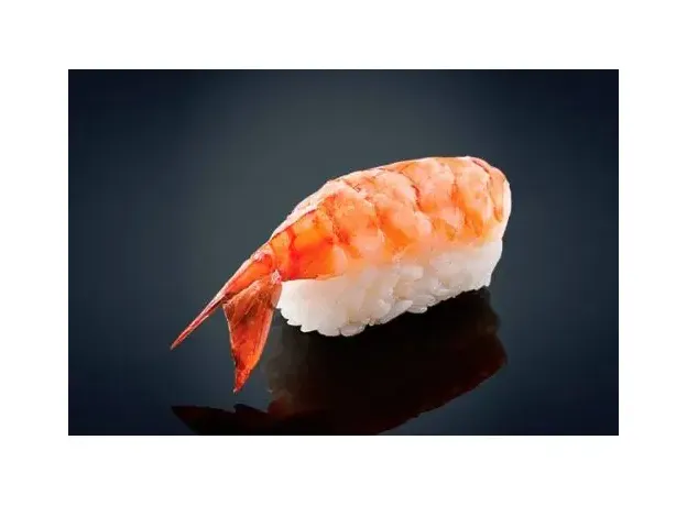 Суши с тигровой креветкой, 1шт.Вес 35 грИмбирь, васаби и соевый соус приобретаются отдельно.