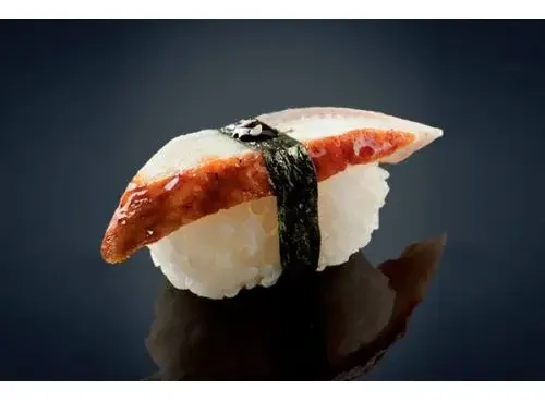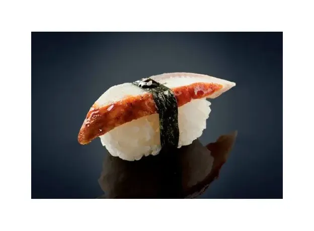 Суши с жареным Угрем, 1шт.Вес 35 грИмбирь, васаби и соевый соус приобретаются отдельно.