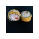 Рис, нори, копчёная курочка, творожный сыр, сладкий перец, кляр, сухари панко, обжарен во фритюре и полит ореховым соусом. 8шт.