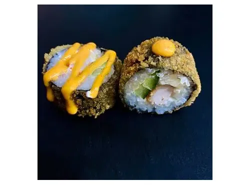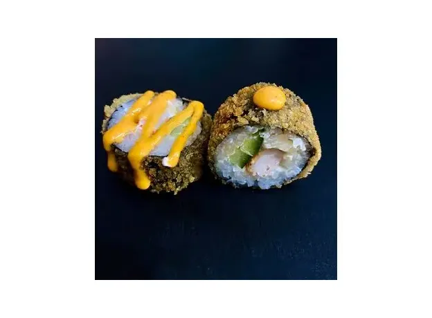 Рис, нори, творожный сыр, креветка, огурец, соус спайси, обвален в кляре и сухарях панко, жареный во фритюре. 8шт.