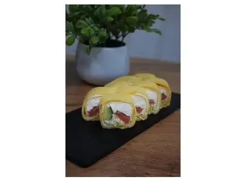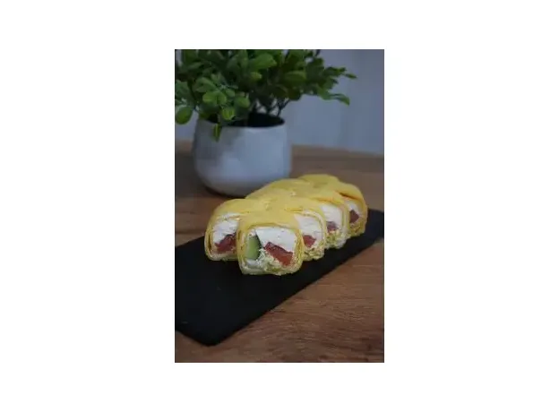 Сырная лепешка, салат айсберг, творожный сыр, помидор, огурец