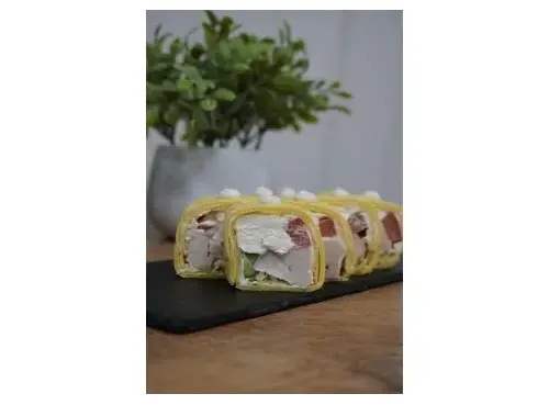 Сырная лепешка, пекинская капуста, сливочный сыр, помидор, огурец, копчёная курица