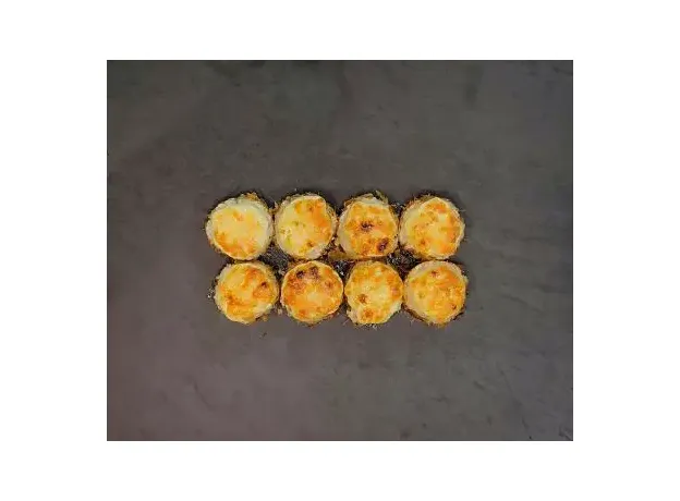 Нежный ролл с томатом, сливочным сыром и лососем, обваленный в стружке тунца под шапкой из японского майонеза и сыра Моцареллы.
