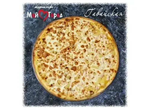 тесто, пицца соус, Сыр Моцарелла,курица, ананасы, Сыр Пармезан,Чесночное масло