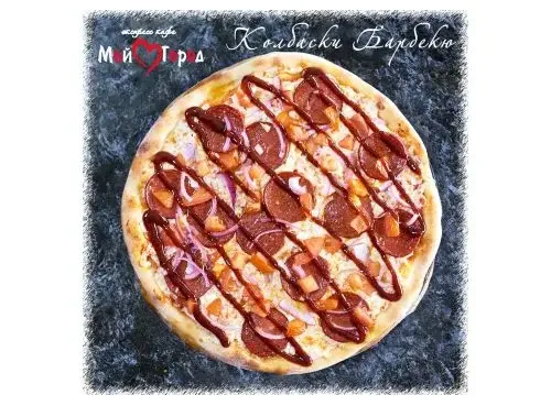 Пепперони, томаты, лук красный маринованный, сыр моцарелла и соус барбекю.