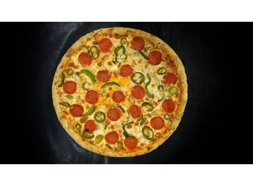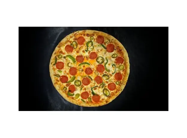 Острый соус со специями, цыпленок, сладкий перец, пикантные пепперони, острый перец халапеньо под сыром моцарелла.Вес 660 гр.