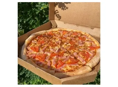 Томатный соус, ветчина, сыр моцарелла, помидоры, лук фри