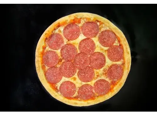 Итальянский томатный соус со специями, чесночное масло, сыр Моцарелла, колбаски СалямиВес 630 г