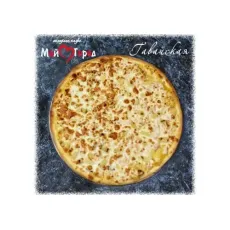 тесто, пицца соус, Сыр Моцарелла,курица, ананасы, Сыр Пармезан,Чесночное масло