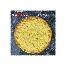 Чесночный соус, бекон, лук красный маринованный, томаты, итальянские травы и сыр моцарелла.