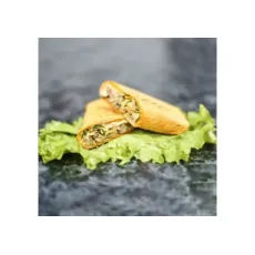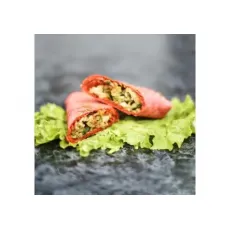 Пшеничный черный лаваш, нежный сливочный сыр, креветки, кольца кальмара, крабовое мясо и свежие овощи.350-400г