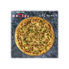 тесто, пицца соус, бекон, свинина,курица, Сыр Моцарелла,Сыр Пармезан, помидор, соус SrirachaЧесночное масло