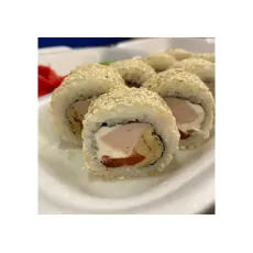 Состав:НориРисТворожный сырВетчина ПомидорВ обсыпке из кунжута Украшен соусом спайсиПорция - 8шт
