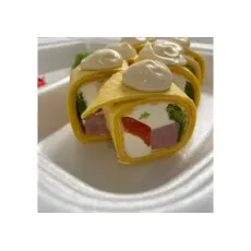 Состав:Сырная тортилья Творожный сырВетчина Сладкий перецСалатУкрашена соусом цезарьПорция - 8шт.