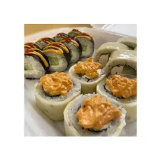 Состав:Острая тортильяСливочный с огурцомЧиз роллЛава цезарьЗапеченный с лососем и огурцом 40шт