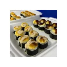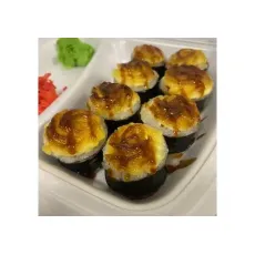 Рис, нори, творожный сыр,креветка, икра масаго, запеченный под шапкой из японского майонеза. 8шт.