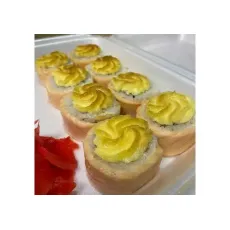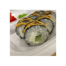 Рис, нори, огурец, мясо снежного краба, в обсыпке из икры масаго, запеченный под шапкой из японского майонеза. 8шт.