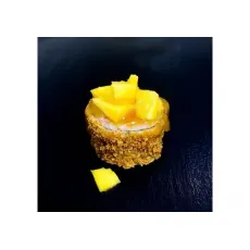 Рис, нори, сливочный сыр, мясо снежного краба, обвален в кляре и сухарях панко, жареный во фритюре, украшен кисло-сладким соусом и кусочками манго. 8шт.