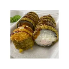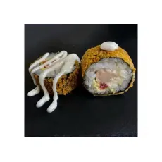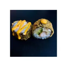 Рис, нори, творожный сыр, креветка, огурец, соус спайси, обвален в кляре и сухарях панко, жареный во фритюре. 8шт.